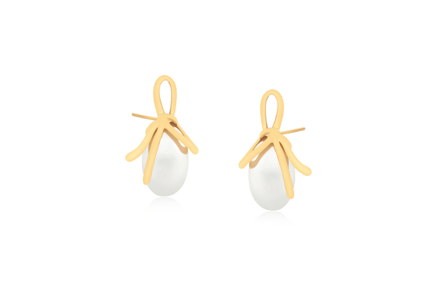 BRINCO BANHADO EM OURO, PÉROLA MABE OVAL 18x13mm